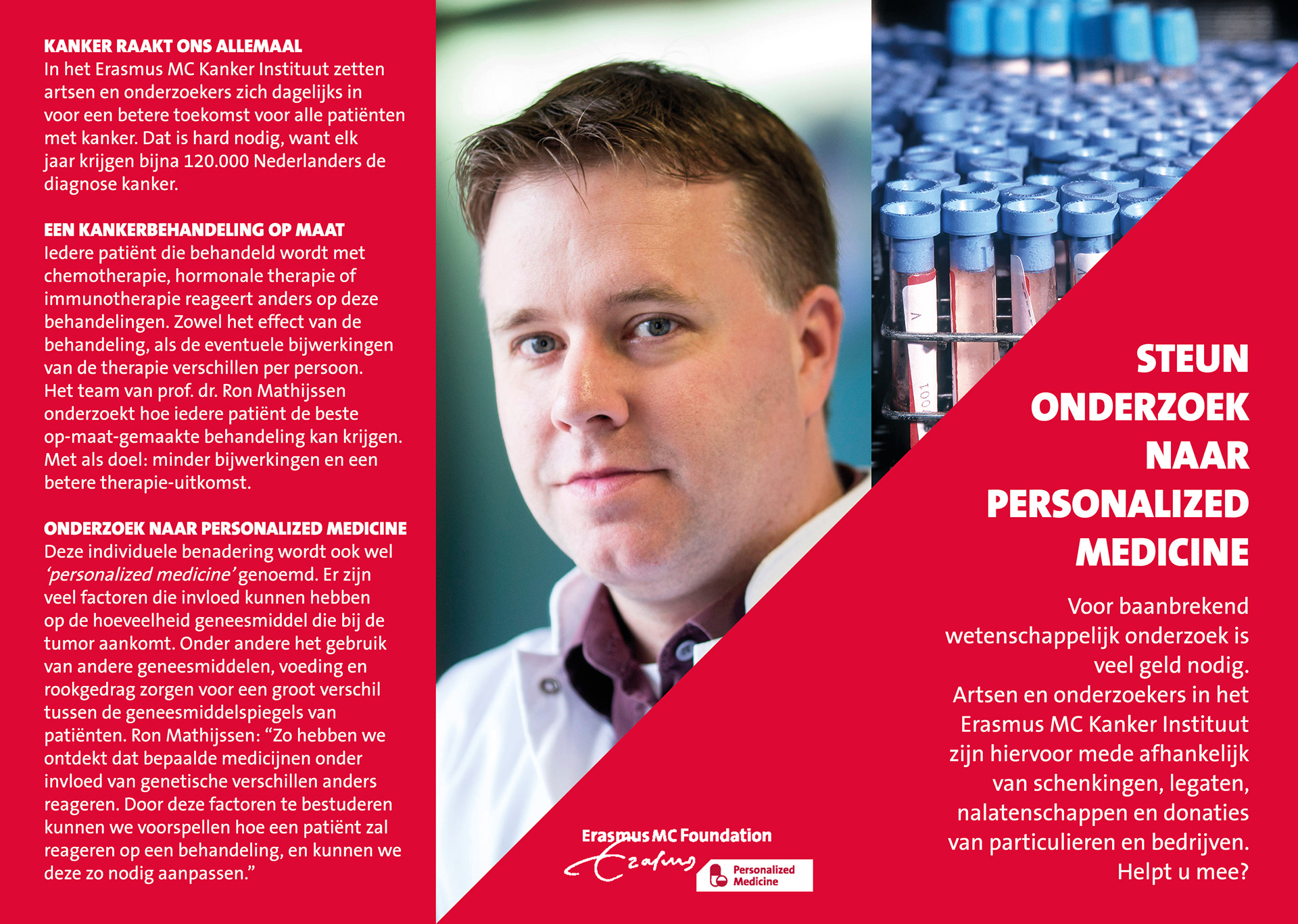 Samen met de donateurs maakt de Erasmus MC Foundation wetenschappelijk toponderzoek en zorgprojecten vanuit het Erasmus MC mogelijk. Dit met als doel ziekten en aandoeningen beter te begrijpen, behandelen, voorspellen en voorkomen. Nu en in de toekomst.