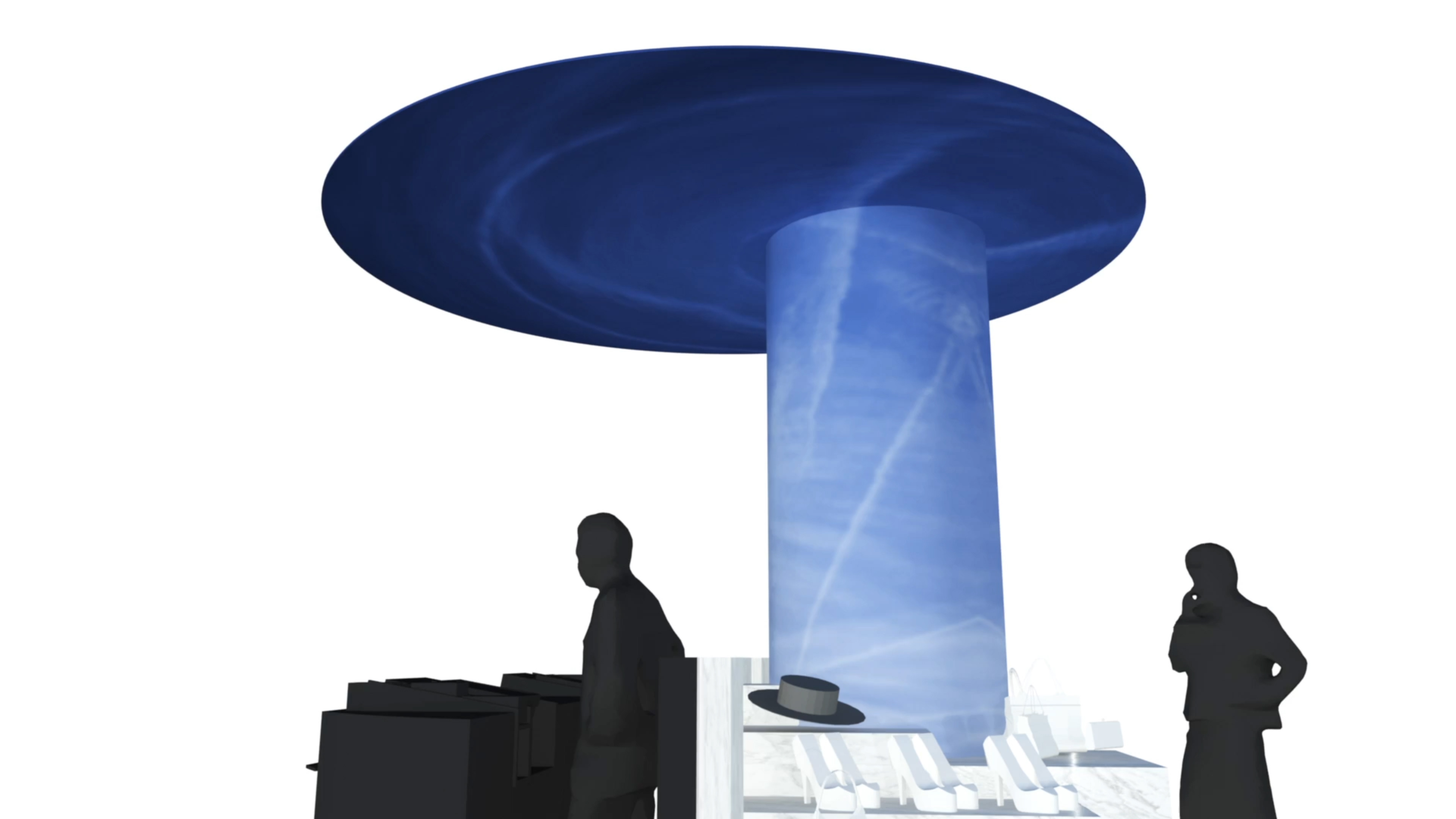 On this led surface, a 10-minute moving image sparks, the title "connecting worlds. Head in the clouds" refers to the passing Dutch Dutch clouds and to "head in the clouds" because you are going to make a distant intercontinental trip or because you are shopping ...
