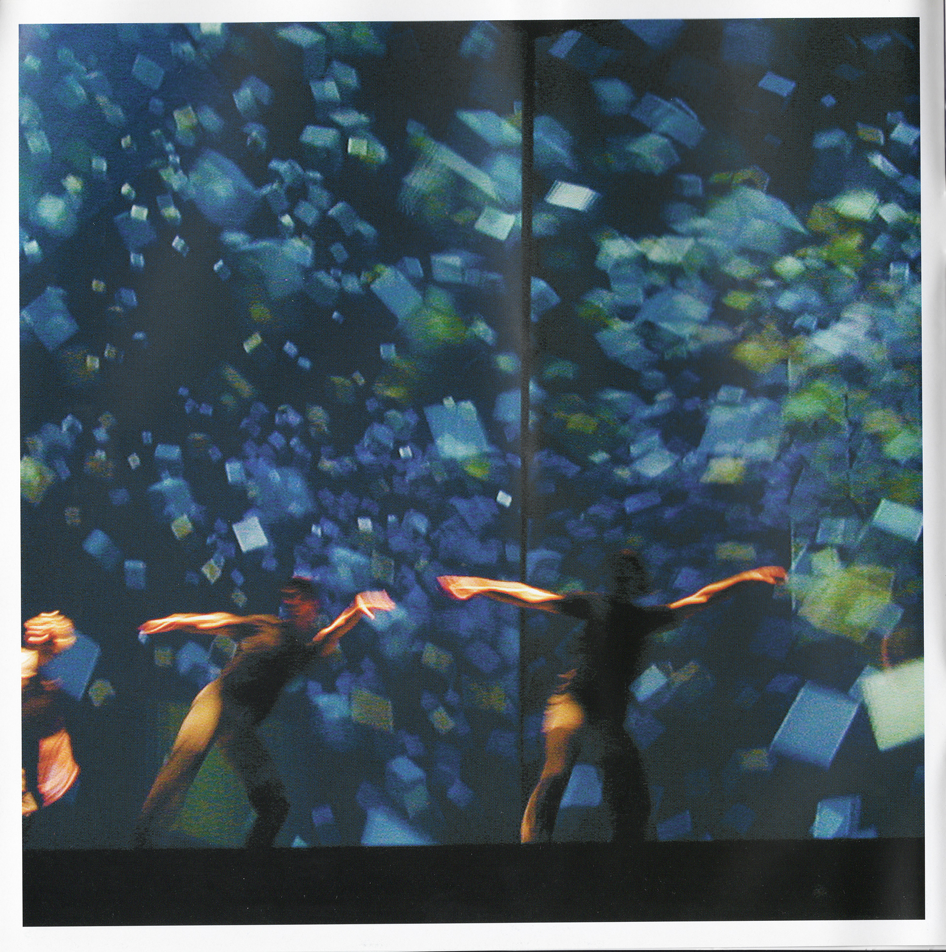 Manyfacts [2001] is an unique combination of dance, architecture and computer graphics. Choreographer/artisctic director Ed Wubbe's creates with architect Winy Maas an extraordinary dance fantasy set in a virtual city of the future created by Wieland&Gouwens. This city is developed by the Rotterdam firm of architects MVRDV. For a whole year MVRDV worked on a cubeshaped city measuring five by five by five kilometres, in which a million people have to be able to live, work and play. This city is brought to life on gigantic screens through dynamic computer simulations by computer graphics designers Wieland & Gouwens.